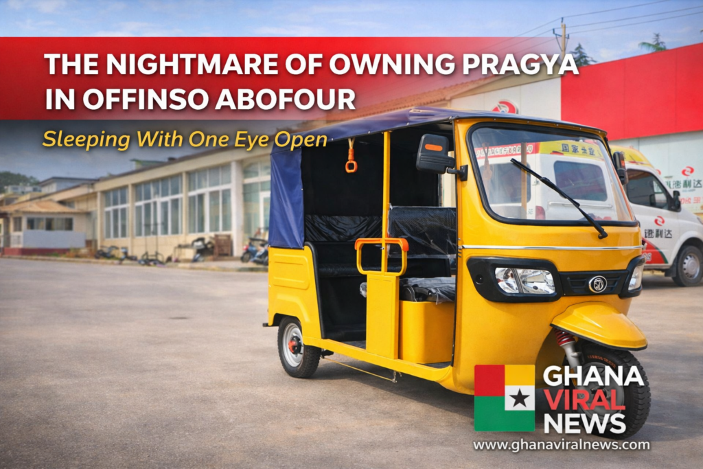 Owning a Pragya in Offinso Abofour today is like sleeping with one eye open. You park it in front of your house at night and still cannot rest. You wake up every few hours to check if it is still there. Some owners have resorted to removing the spark plug before going to bed, others chain it to their doorpost like a goat, while the more desperate ones sleep inside the tricycle itself. This is no exaggeration. This is the daily nightmare many face.